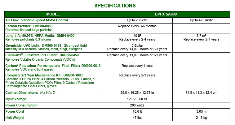 • Ideal for light commercial applications where there are allergens, bacteria, viruses, new construction/ renovation odors, tobacco & cannabis odors, animals, food & spice odors, mold, water and sewer damage.